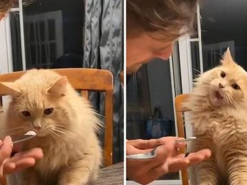Cat eats ice cream for the first time This is the hilarious moment a cat gets its first taste of ice cream and quickly gets...