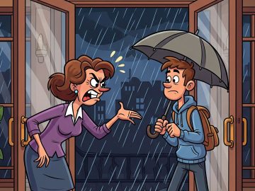 Late in the night, a mother hears noises in the lobby. She goes to check it out, and sees her son preparing to leave the...