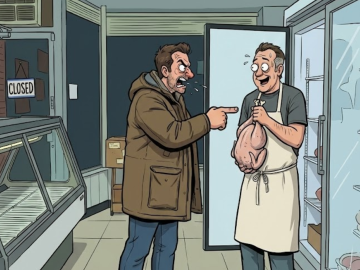 It’s the day before Thanksgiving, and the butcher is just locking up when a man begins pounding on the front door. “Please let me in,”...