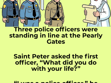 Three police officers were standing in line at the Pearly Gates Saint Peter asked the first officer, “What did you do with your life?” “I...