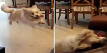 It’s hilarious, especially because the cat still manages to look a little bit lazy while doing it.