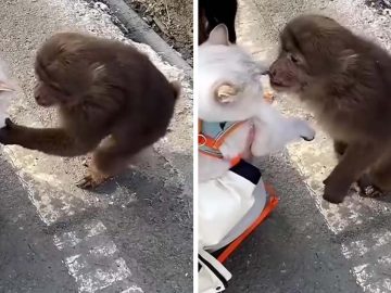 The video shows an owner helping her adorable white cat become friends with a monkey. The monkey, who seems to have fallen in love at...