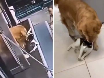 Golden Retriever Grabs Cat And Drags It Inside House The woman issued the instruction to her golden retriever after she saw on a surveillance camera...