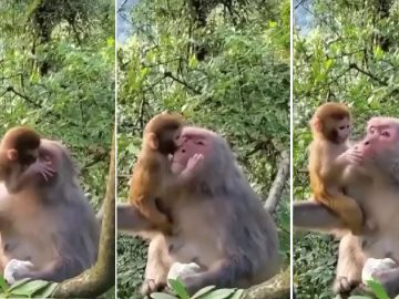 Monkey Child Kissing His Mother No one else can do the way a mother cares for her child. Animals also have the same feelings as...
