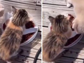 The hilarious video of a greedy kitten preventing its siblings from approaching the food bowl is making internet users burst into laughter! “All mine,” says...