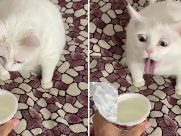 Cat Gags Smelling Sour Cream In the short clip, the kitten named Belyash is sitting on a blanket. Its owner holds out a container of...
