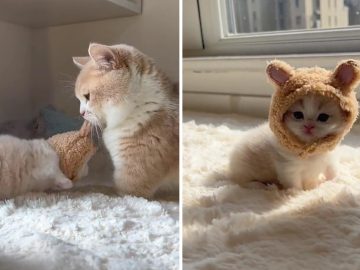 It doesn’t get cuter than a kitten in a little bear hat hanging out in the sun. The clip features an adorable little orange and...