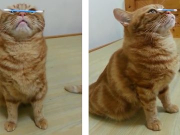 Cat balances cotton bud on its nose This well-trained feline displays her remarkable self-control as she effortlessly balances a cotton swab on her nose! She...