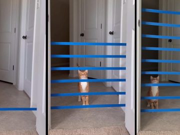 Cat Takes A Moment To Calculate Before Each Jump In This Cat Tape Challenge In this “cat tape challenge”, the owner adds one strip of...