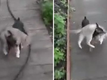 Dog Brings Cat to Home This is the bizarre moment a tiny chihuahua gives his feline friend a lift home – by carrying the cat...