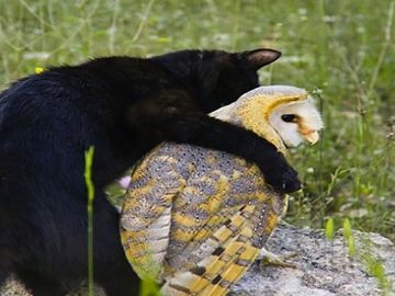 This is one of the oddest animal pairings we have ever seen! Cats and owls are certainly not the kinds of animals you would believe...
