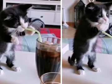Kitten Tries To Drink With A Straw In the video you can see how the kitten he stands on two legs and inserts the tip...