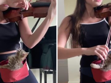 Violin practise with kitten. Esther Abrami is a violinist from France. She lives with her cute foster kitten named Rémila. Rémila didn’t like to be...