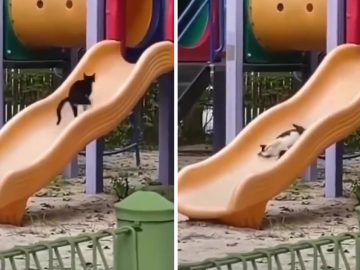 Cat plays on a slide all by itself “Cat enjoying a slide,” reads the caption posted along with the video. The video opens to show...