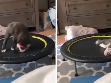 Adorable Puppy Is Determined To Do A Flip On His New Trampoline In the short clip, we see Leroy the Old English Bulldog and his...