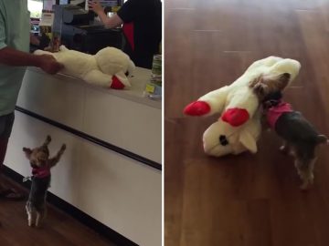 We Can’t Stop Laughing Seeing Her Carry It. Just because she’s small doesn’t mean you should underestimate her! A teeny-tiny Yorkshire terrier named Lucy in...