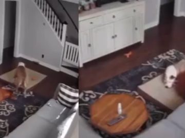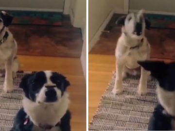 Double Dog Treat Trick In the video, one dog tries to do a trick by flipping a treat off his nose and catching it. But...