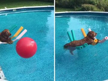 Dog Relaxes In The Water By Laying On Pool Noodles In an adorable clip, the clever pup is seen casually floating around a pool on...