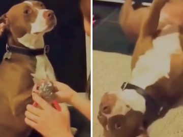 Pitbull Pretends To Faint To Avoid Getting His Nails Clipped.