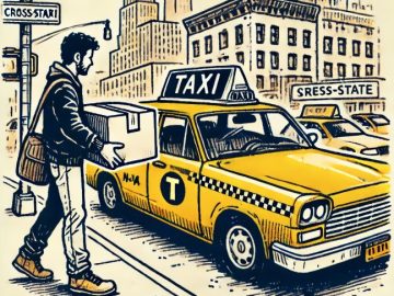 A guy in New York orders a taxi to go cross state. The taxi pulls up, and he gets in, carrying a large box which...
