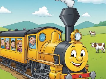 A passenger train is creeping along slowly. Finally, it creaks to a halt. A passenger sees a conductor walking outside. ‘What’s going on?’ she yells...