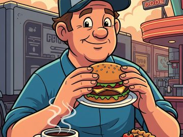 A truck driver stopped at a roadside diner for lunch and ordered a cheeseburger, coffee and a slice of apple pie. As he was about...