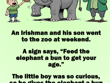 An Irishman and his son went to the zoo at weekend. A sign says, “Feed the elephant a bun to get your age.” The little...