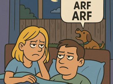 A blonde & her husband are lying in bed listening to the next door neighbor’s dog. It has been in the backyard barking for hours...