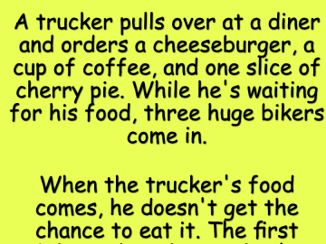 A trucker pulls over at a diner and orders a cheeseburger, a cup of coffee, and one slice of cherry pie. While he’s waiting for...