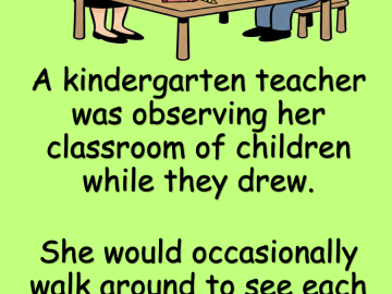 A kindergarten teacher was observing her classroom of children while they drew. She would occasionally walk around to see each child’s artwork. As she got...