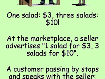 One salad: $3, three salads: $10! At the marketplace, a seller advertises “1 salad for $3, 3 salads for $10”. A customer passing by stops...