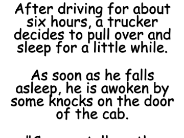 After driving for about six hours, a trucker decides to pull over and sleep for a little while. As soon as he falls asleep, he...