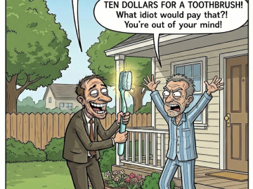A salesman sells his wares door to door in a huge high-rise building. He knocks on a young man’s door and asks him: “Would you...