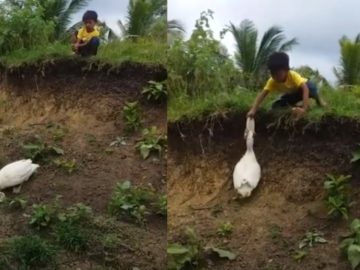 A heartwarming incident took place in Quezon Province, the Philippines when a considerate duck retrieved a boy’s flip-flop and returned it to him. Myla Aguila,...