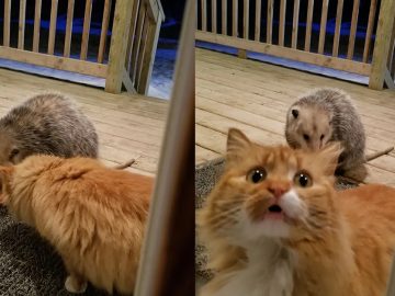 What would you do if you saw a possum stealing your cat’s dinner? Most of us would probably help our cats get back their food...