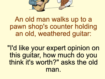 An old man walks up to a pawn shop’s counter holding an old, weathered guitar: “I’d like your expert opinion on this guitar, how much...