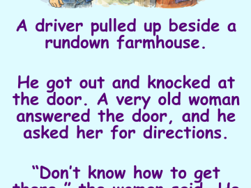 A driver pulled up beside a rundown farmhouse. He got out and knocked at the door. A very old woman answered the door, and he...