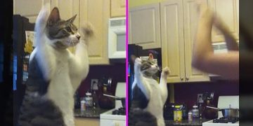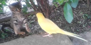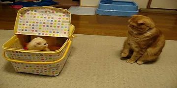 Adult Cat’s ‘Close Encounter’ With A Small Kitten