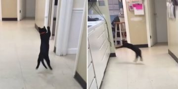 Watch how this kitten chases after a ping pong ball copying its bounce.