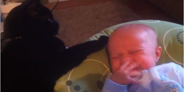 Hilarious video shows what a pet cat does when it sees a crying newborn