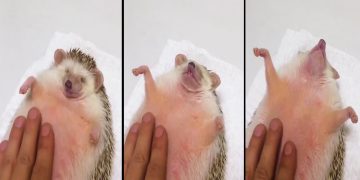 The hedgehog relaxing like a baby. An adorable video of sleepy little hedgehog.