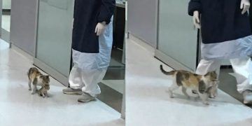 Stray Cat Carries Her Sick Kitten To Hospital, Medics Rush To Their Aid