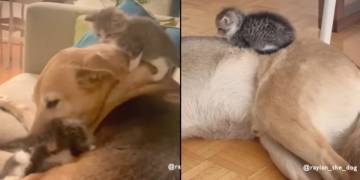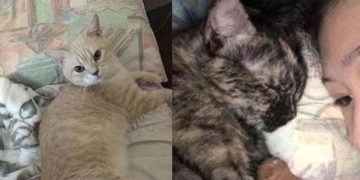 CatsAfter giving birth, the mother cat put the kittens next to the owner’s pillow to sleep every night