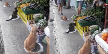 Funny: Stray cats were spotted occupying the circle marks near the market.