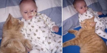 The baby is born with a fatal heart defect – then the cat refuses to leave his side