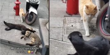 Life, CatsCat catches her sneaky partner cuddling with another feline and their reactions are humourous.