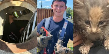 Firefighters crawl 30 feet through storm drain to rescue trapped kitten — thank you