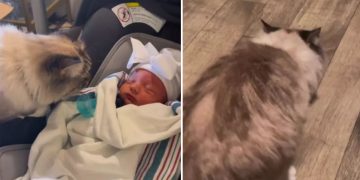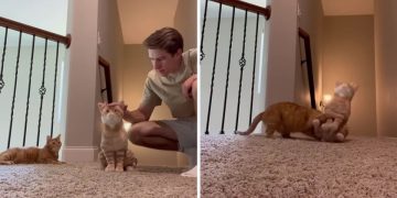 Man makes cat jealous with fake furry friend. Funny reaction video.