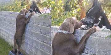 Man Put A Stool Next To The Fence So His Lab Could Meet The Neighbor Dogs’