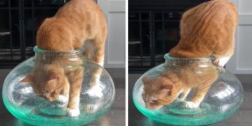 Contortionist Cat Squeezes Into a Small Glass Jar.